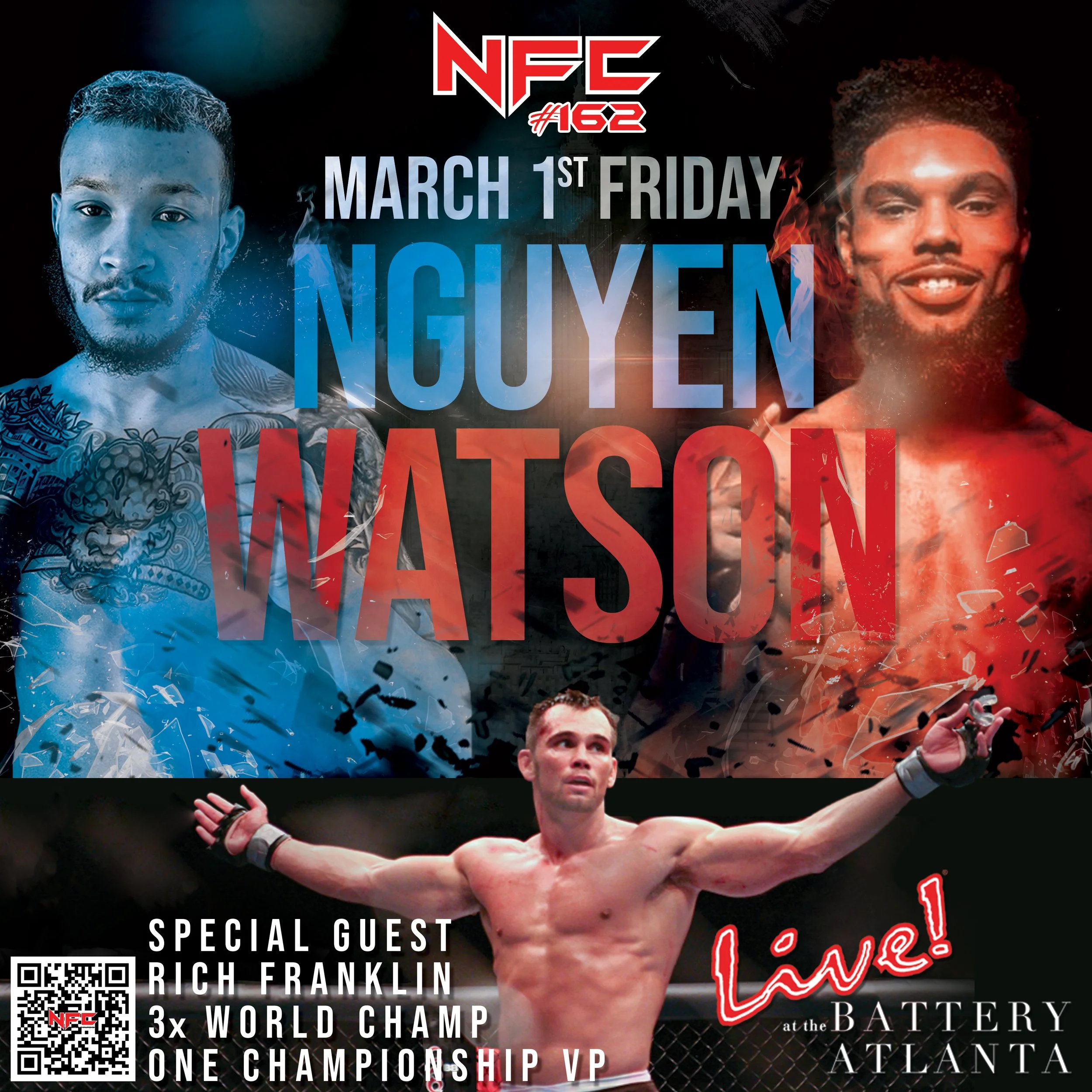 Stream NFC 162 live and catch all the thrilling fight action. We will be streaming from Live! At The Battery, Atlanta, on Friday, March 1st, 2024. The battles begin at 7 PM.