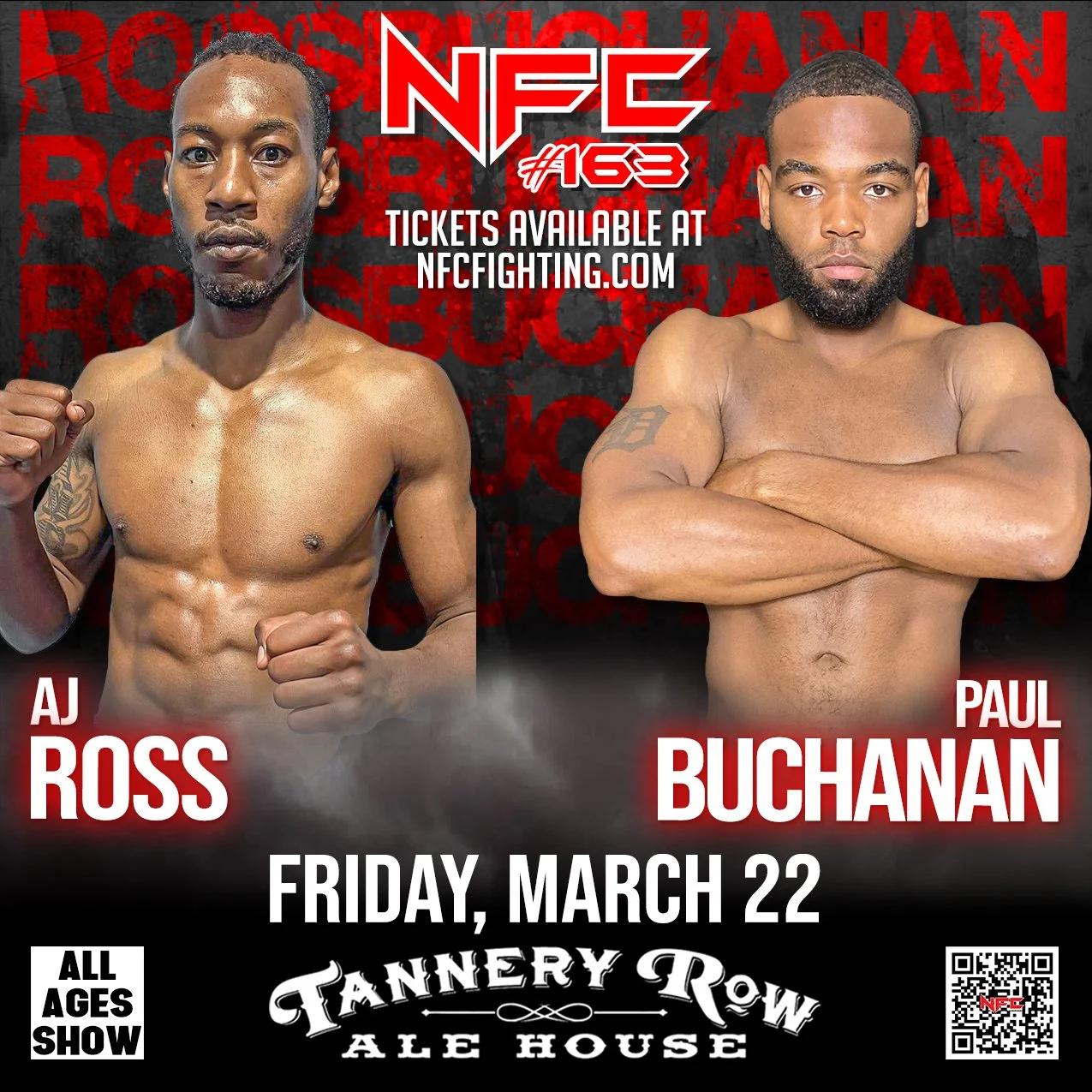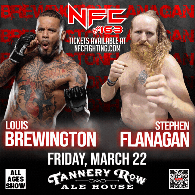 Stream NFC 163 live and catch all the thrilling fight action. We will be streaming from Tannery Row Alehouse, on Friday, March 22nd, 2024. The battles begin at 7 PM.
