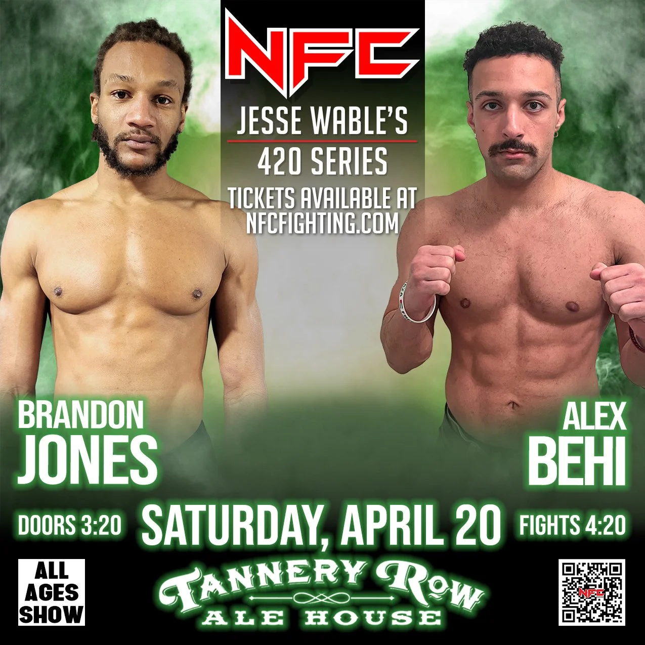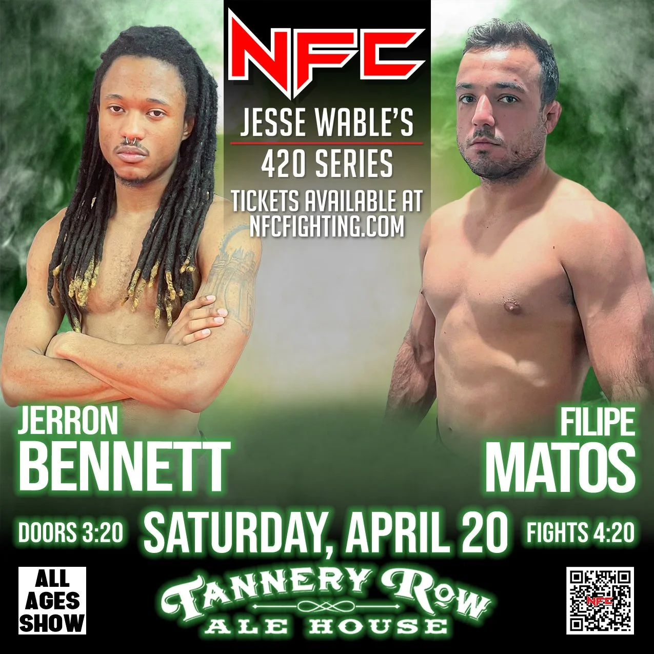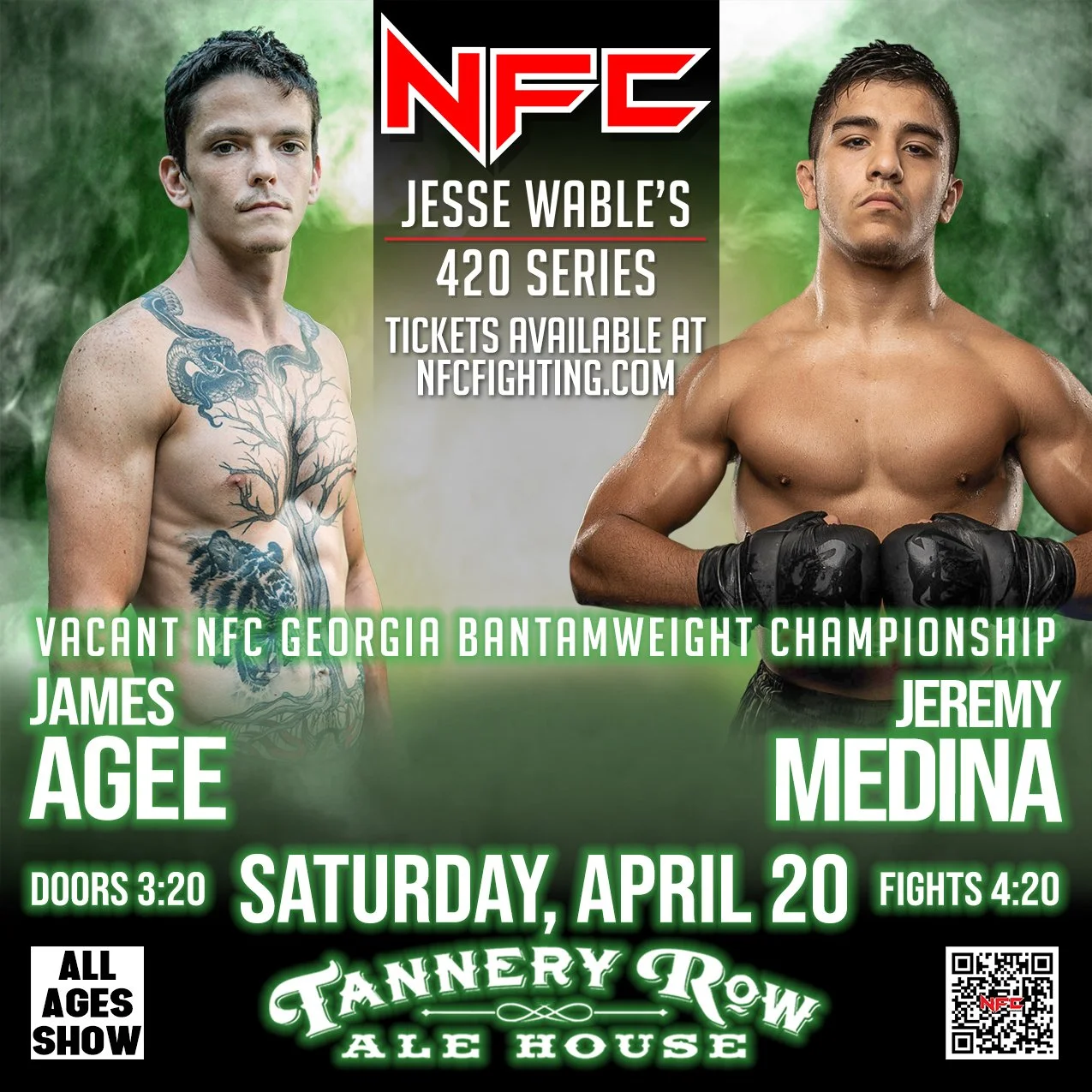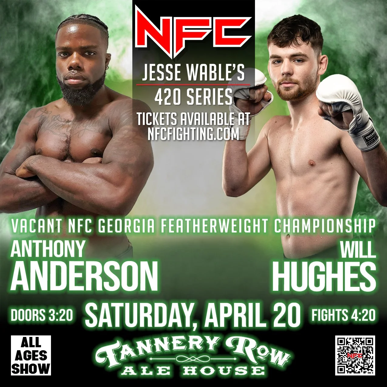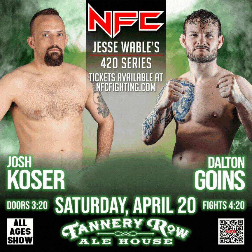 Join us for an action-packed night at NFC 164: Jesse Wable's 420 Series, Georgia's premier live sporting event hosted at Tannery Row Alehouse in Buford, GA.