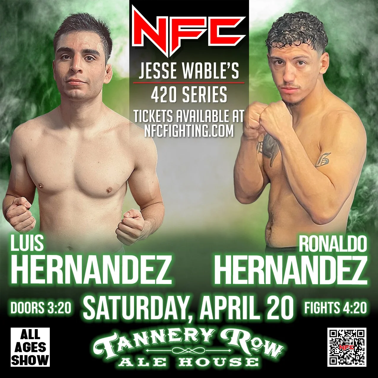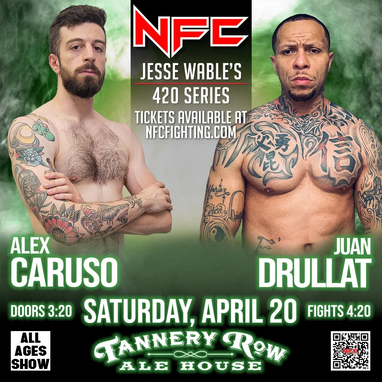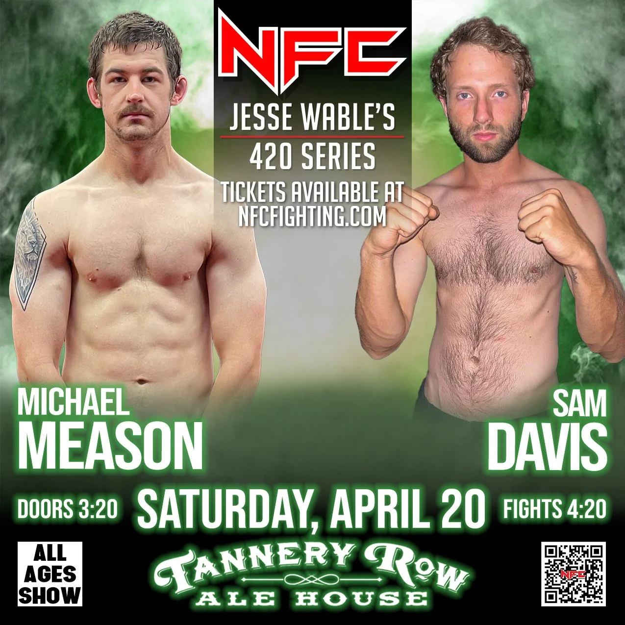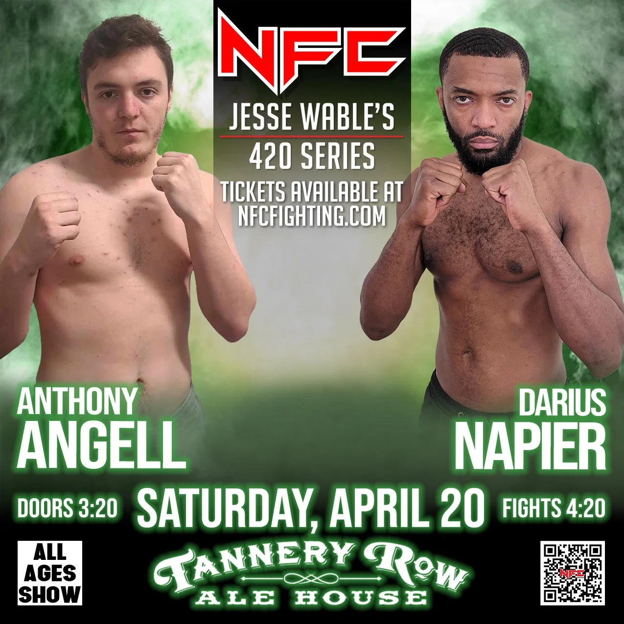 Join us for an action-packed night at NFC 164: Jesse Wable's 420 Series, Georgia's premier live sporting event hosted at Tannery Row Alehouse in Buford, GA.