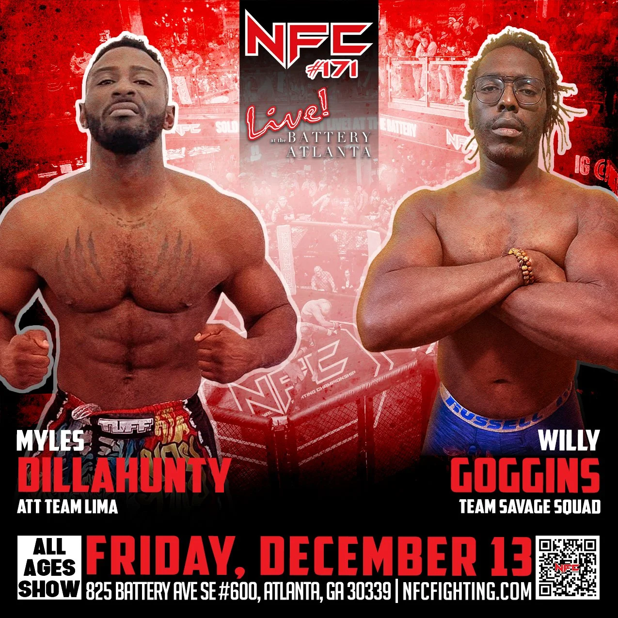 Stream NFC 171 live and catch all the thrilling fight action. We will be streaming from Live at the Battery in Atlanta, GA on Friday, December 15th. The battles begin at 7 PM.