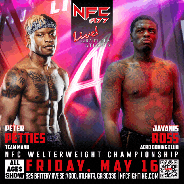 The fight night Atlanta has been waiting for is here! NFC #177 brings an adrenaline-fueled lineup of MMA and Muay Thai action to Live! At The Battery on May 16th. With 12+ hard-hitting matchups, a high-energy atmosphere, and an unforgettable night of live combat sports, this is an event you don’t want to miss.