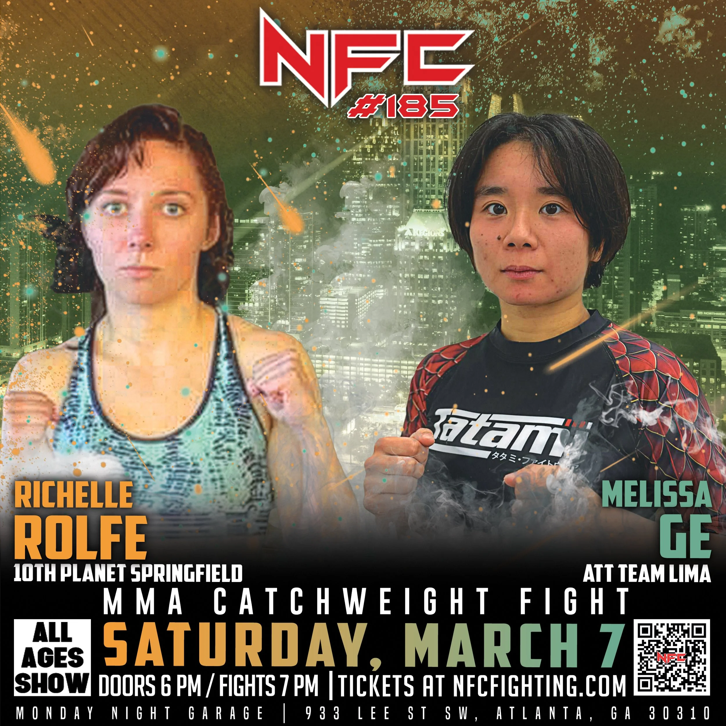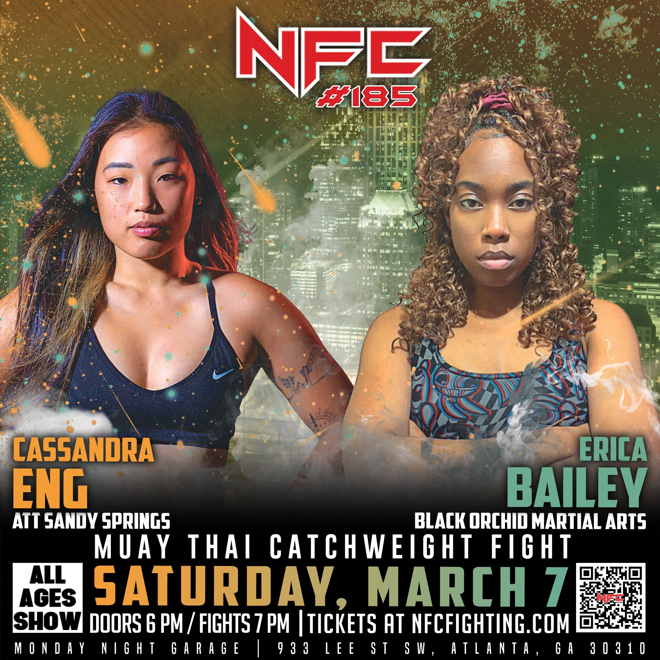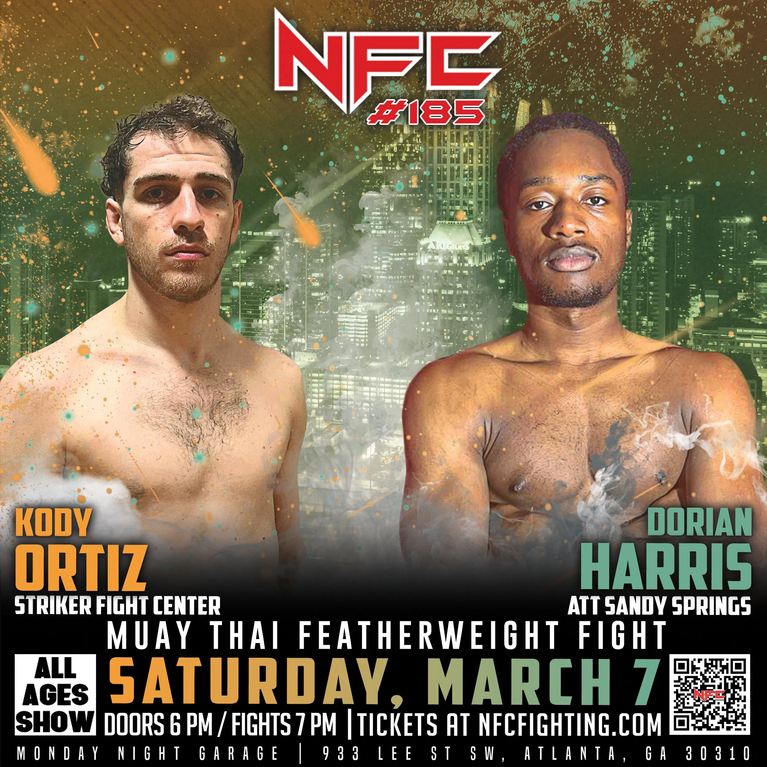 Stream NFC #185 live and catch all the thrilling fight action. We will be streaming from Monday Night Garage in Atlanta, Georgia, on Saturday, March 7. The battles begin at 6 PM.