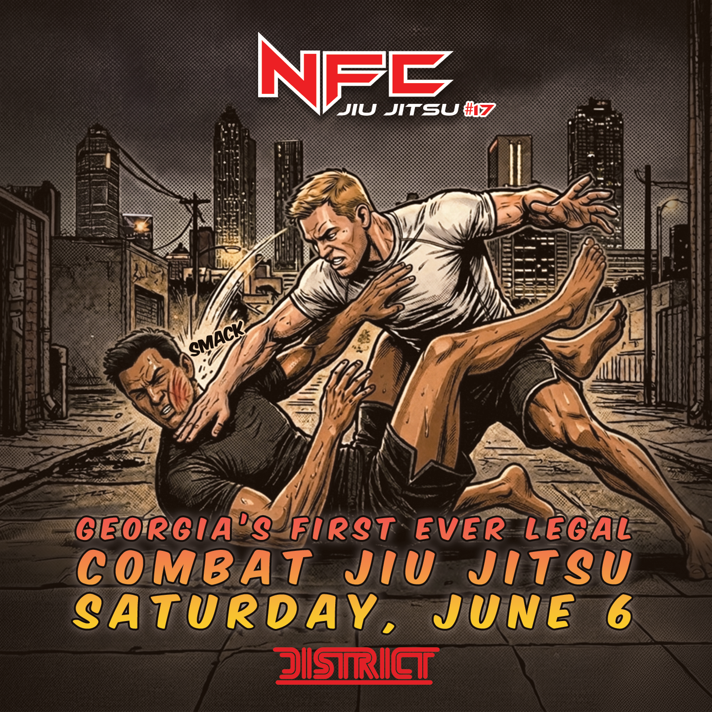 NFC Jiu Jitsu presents the first ever legal Combat Jiu Jitsu in the state of Georgia! Saturday, June 6 we present a mix of Gi Jiu Jitsu, No Gi Jiu Jitsu and Combat Jiu Jitsu under the bright lights of District Atlanta!
